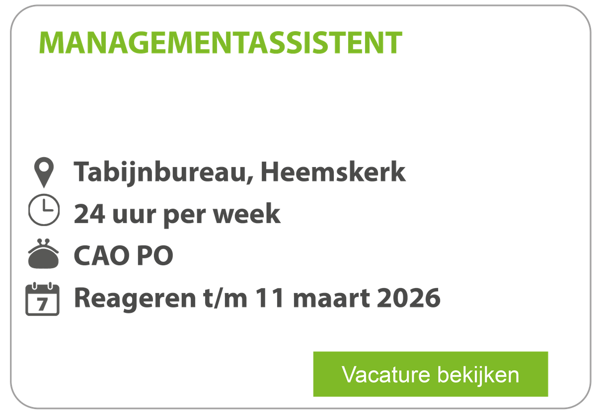 Zit jouw vacature er op dit moment niet tussen? Open sollicitaties en vragen zijn welkom. Neem gerust contact op met tel. 0251-727287 of vacature@tabijn.nl.