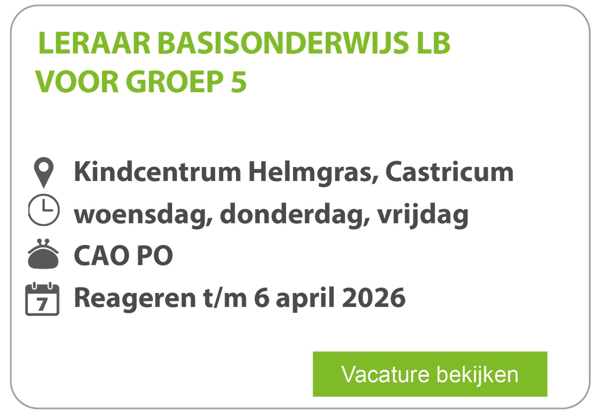 Maak kennis met de diversiteit van onze scholen en kindcentra en kom erachter wat bij je past. We willen graag in je investeren om zo gezamenlijk onderwijs en opvang op een nog hoger plan te tillen.